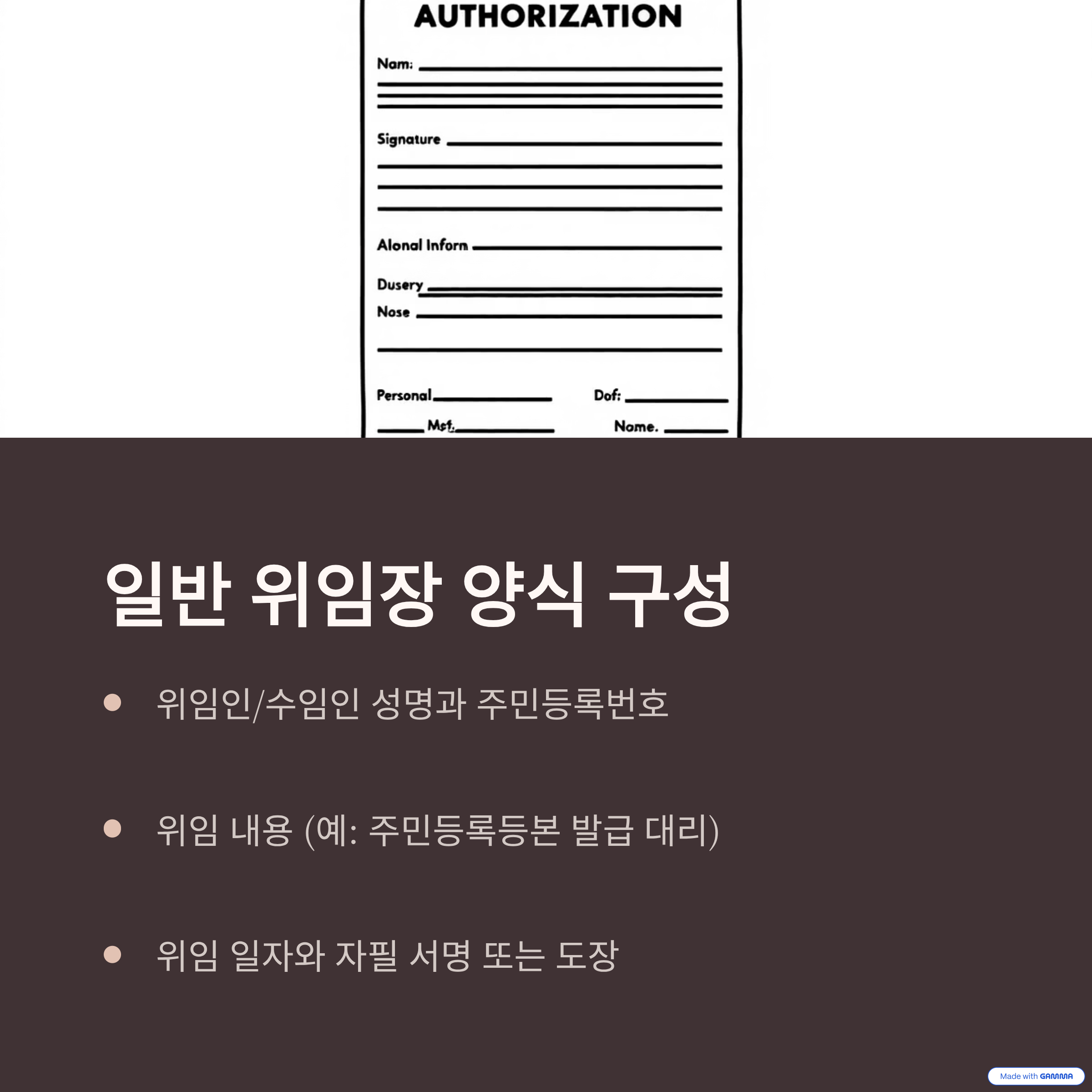 일반 위임장 양식은 이렇게 구성돼요