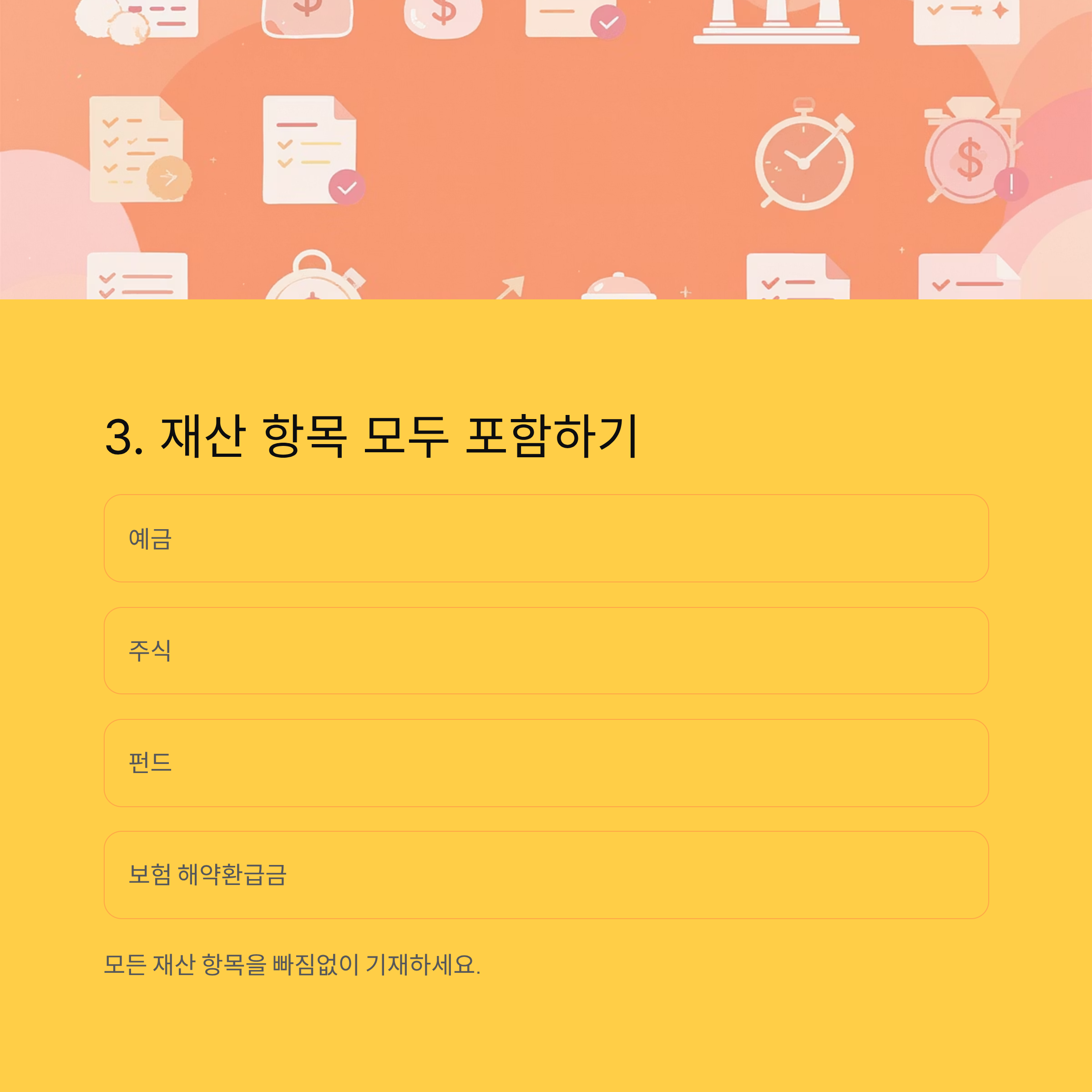| 재산 항목 | 보험 해약환급금, 주식 포함 |