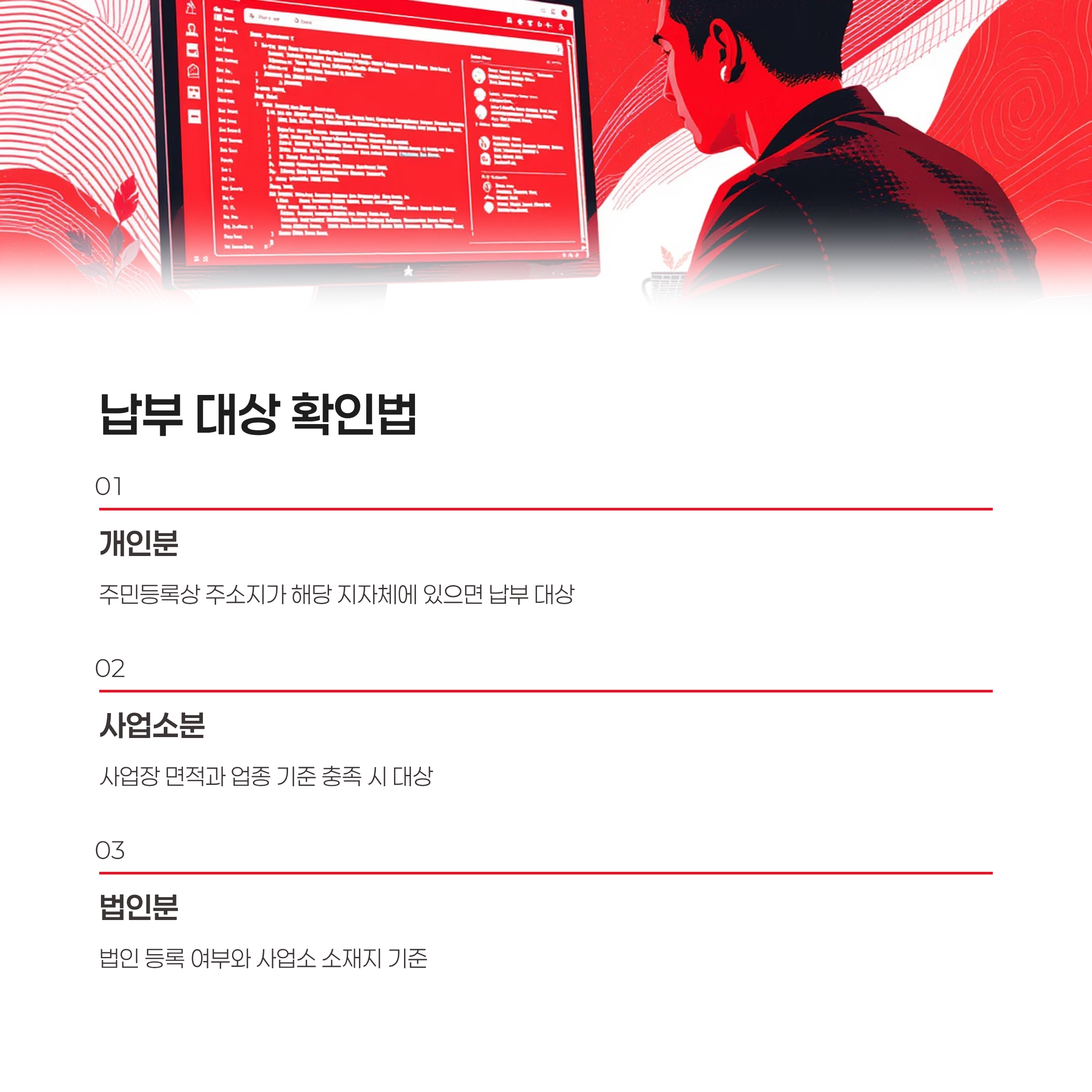 - 사업소분: 사업장 면적과 업종 기준 충족 시 대상